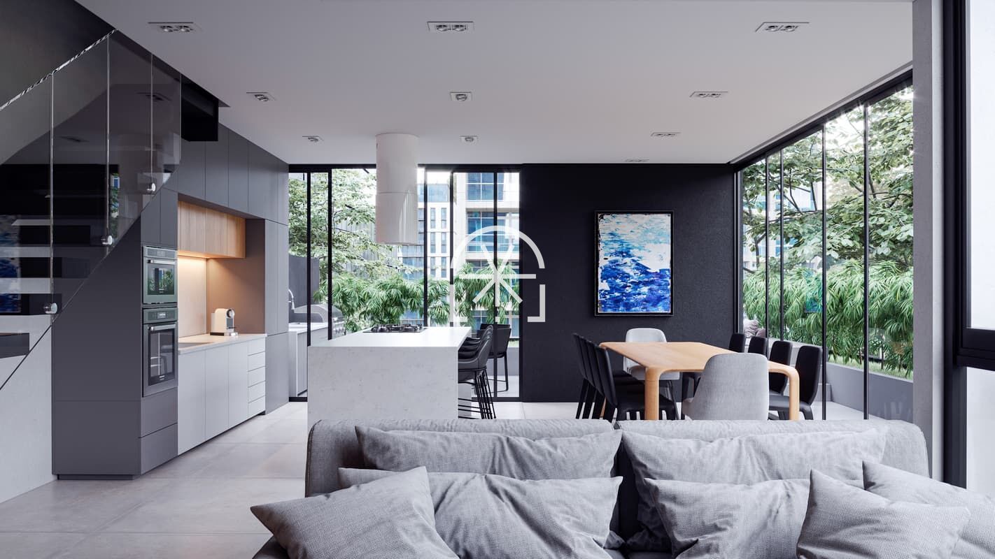 Fachada revestida em porcelanato c/ sistema aerado de alta performance termo acústica, assim como as esquadrias em alumínio c/ pintura eletrostática;